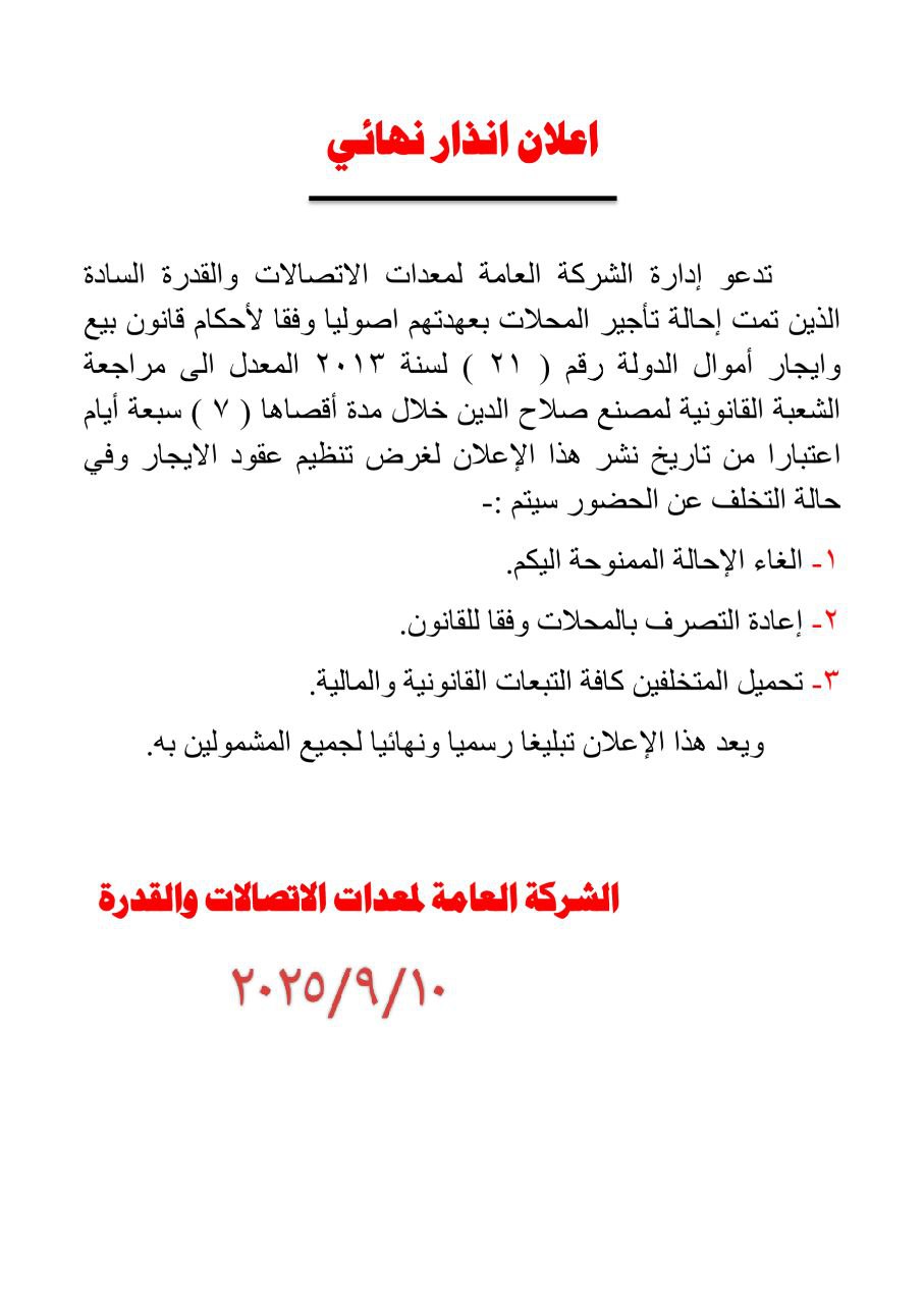 السيد المدير العام للشركة العامة لمعدات الاتصالات...