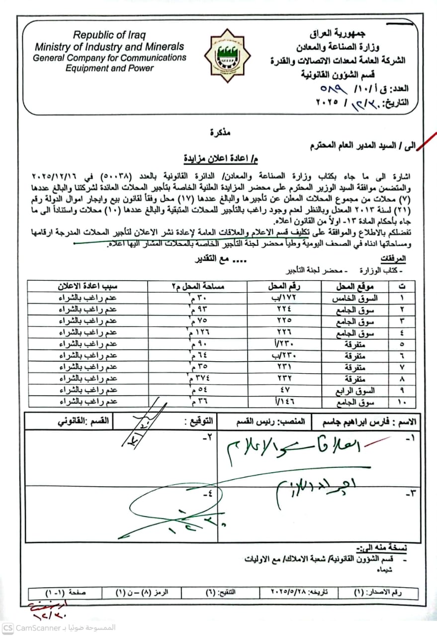 السيد المدير العام للشركة العامة لمعدات الاتصالات...