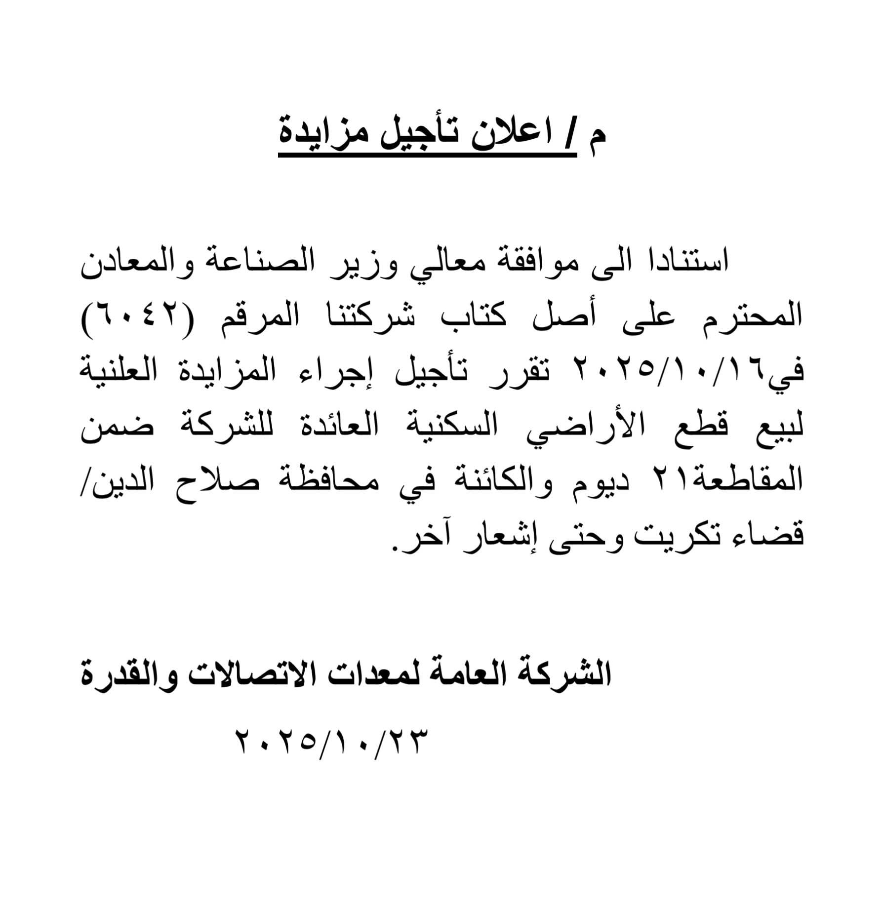 الشركة العامة لمعدات الاتصالات والقدرة تجري انتخاب...